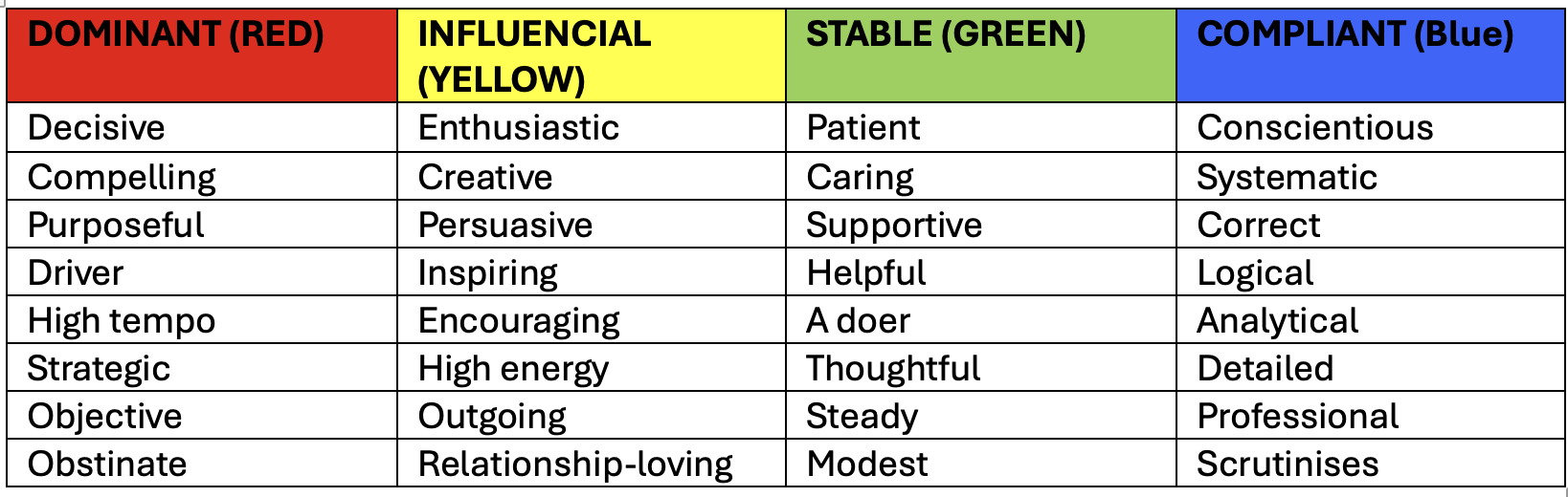 In broad terms, the main characteristics in DISC profiling are: